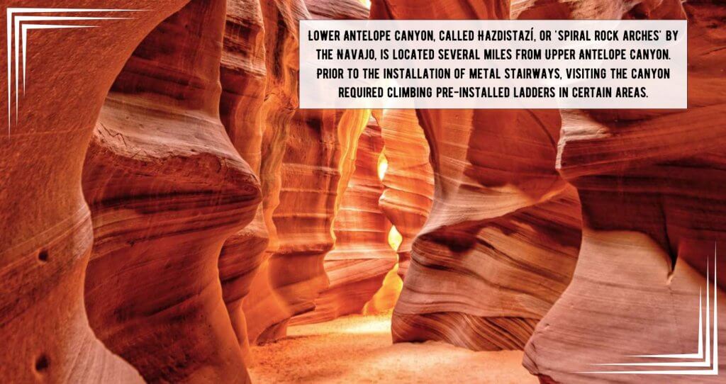 Los más aventureros deberían considerar Lower Antelope Canyon. Su entrada se encuentra en el fondo del cañón, por lo que no debería suponer un problema para excursionistas de cualquier edad, y la caminata desde el aparcamiento hasta la entrada sólo dura diez minutos. No obstante, prepárese para caminar mucho y lleve un buen par de zapatos cómodos.