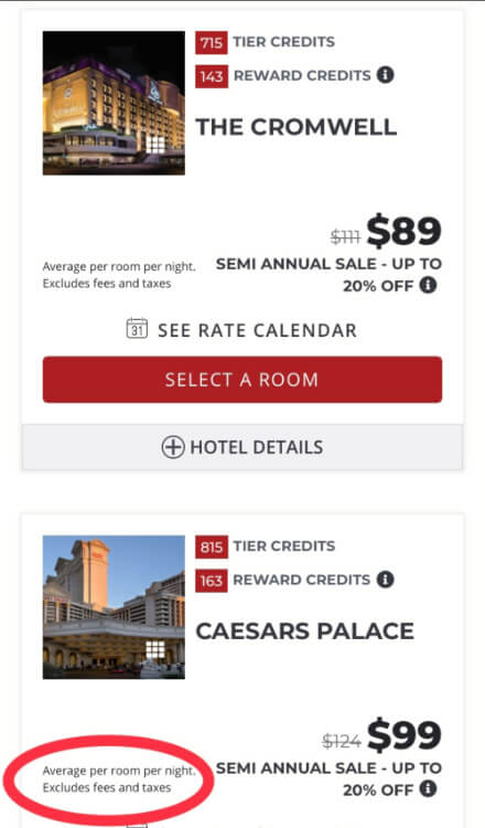 The hotel websites are not any better, here is the initial price that Caesars Palace shows, of course, there is no mention of resort fees anywhere on the page.