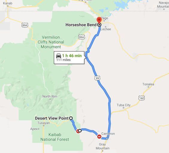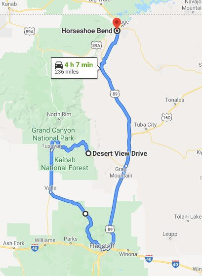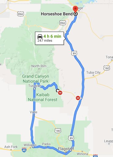 如果沙漠景觀路線關閉了,你將不得不驅車近兩個小時(在馬蹄灣的相反方向),並在向北行駛前經過弗拉格斯塔夫。